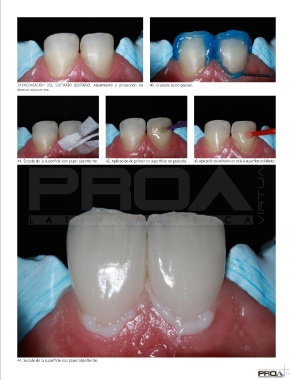 39.PREPARACIÓN DEL SUSTRATO DENTARIO. Aislamiento y protección de 40. Grabado ácido parcial. dientes adyacentes. 43. Aplicación de adhesivo en toda la superficie del diente. 17