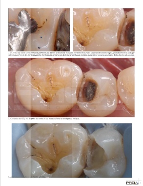 5. Cavidades del 35 y 36, después del retiro de las restauraciones en amalgamas antiguas. 6. Aislamiento absoluto de los dientes a tratar. 5