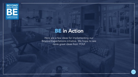BE in Action Here are a few ideas for implementing our Beyond Expectations initiative. We hope to see more great ideas from YOU! 53