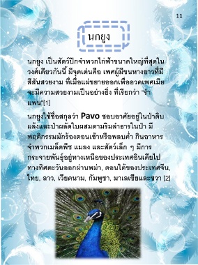 นกยูง เป็นสัตว์ปีกจ ำพวกไก่ฟ้ำขนำดใหญ่ที่สุดใน