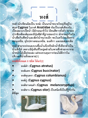 • หงส์ขำว (Cygnus olor) เป็นชนิดที่เป็นที่รู้จักกัน