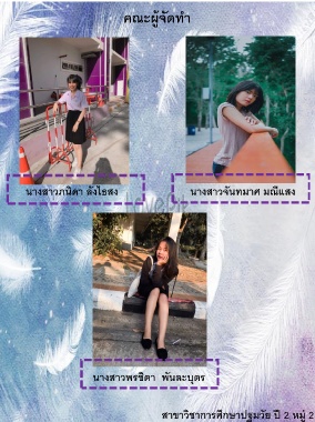 คณะผู้จัดท ำ นำงสำวภนิดำ ลังไธสง นำงสำวจันทมำศ มณีแสง นำงสำวพรชิตำ พันละบุตร สำขำวิชำกำรศึกษำปฐมวัย ปี 2 หมู่ 2