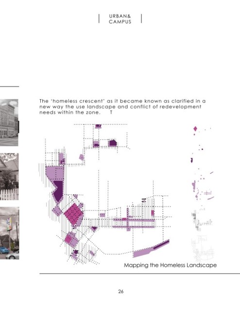 DIAGRAMMATIC BREAKDOWN OF THE HOMELESS CRESCENT DEFINING THE CONFLICT AREA DEFINING THE URBAN CORe