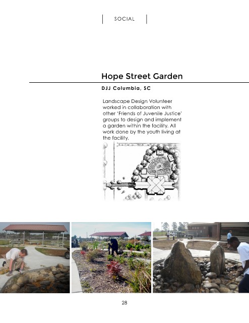SOCIAL Hope Street Garden DJJ Columbia, SC Landscape Design Volunteer worked in collaboration with other ‘Friends of Juvenile Justice’ groups to design and implement a garden within the facility. All work done by the youth living at the facility. 28