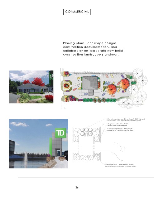 L W COMMERCIAL T Planing plans, landscape designs, construction documentation, and collaborator on corporate new build construction landscape standards. TD Bank Monolith Landscape Plan Greenville, SC 36