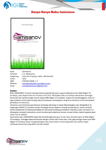 Saya harap buku SAMISANOV dapat bermanfaat bagi para guru di luar sana, terutama guru di SMA Negeri