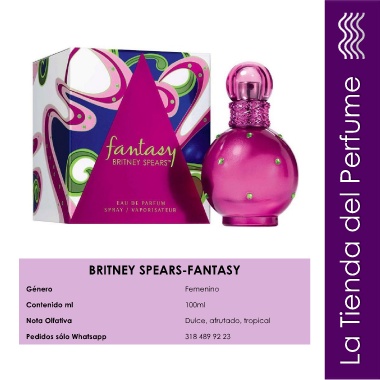 BRITNEY SPEARS-FANTASY La Tienda del Perfume Género Femenino Contenido ml 100ml Nota Olfativa Dulce, afrutado, tropical Pedidos sólo Whatsapp 318 489 92 23