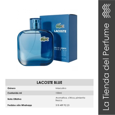 LACOSTE BLUE La Tienda del Perfume Género Masculino Contenido ml 100ml Aromatica, citrica, pimienta Nota Olfativa fresca Pedidos sólo Whatsapp 318 489 92 23