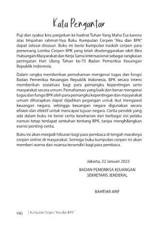 atas limpahan rahmat-Nya Buku Kumpulan Cerpen “Aku dan BPK”