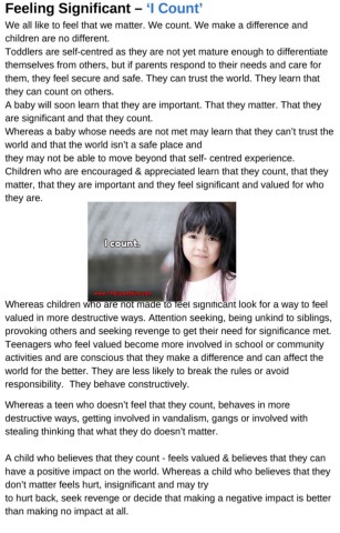 Whereas a teen who doesn’t feel that they count, behaves in more