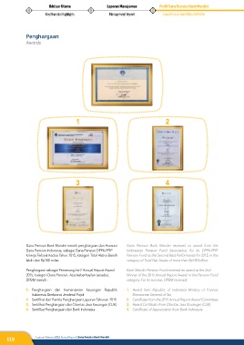Penghargaan sebagai Pemenang ke-2 Annual Report Award Bank Mandiri Pension Fund received an award as the 2nd