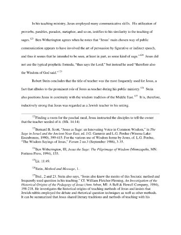 sages. 123 Ben Witherington agrees when he notes that “Jesus’ main chosen way of public