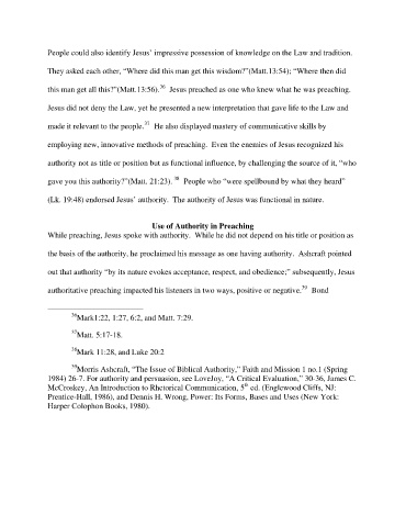 the basis of the authority, he proclaimed his message as one having authority. Ashcraft pointed