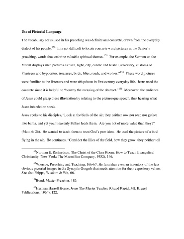 Pharisees and hypocrites, treasures, birds, lilies, roads, and wolves.” 154 These word pictures