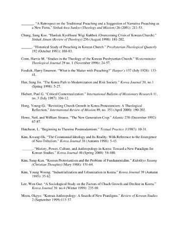 ______. “Historical Study of Preaching in Korean Church.” Presbyterian Theological Quaterly