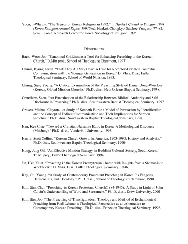 Contemporary Korean Preaching.” Ph.D. diss., Princeton Theological Seminary, 1996.