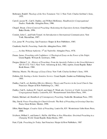 Craddock, Fred B. Preaching. Nashville: Abingdon Press, 1985.