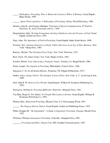 _____. Marketplace Preaching: How to Return the Sermon to Where It Belongs. Grand Rapids: