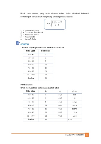 Untuk data sampel yang telah disusun dalam daftar distribusi frekuensi