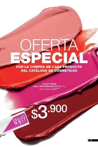 . .,,- POR LA COMPRA DE CAD.A"PRODUCTO #' _/4~ #' .. DEL CATALOGO_~ " SMETICOS COLORTREND --~- lt':c - · - - Lápiz Labial Hidratante FPS 15 3.6 g Precio Regular ,-.- .