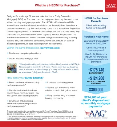 Mortgage (HECM) for Purchase Loan can help your clients buy their next home HECM for Purchase