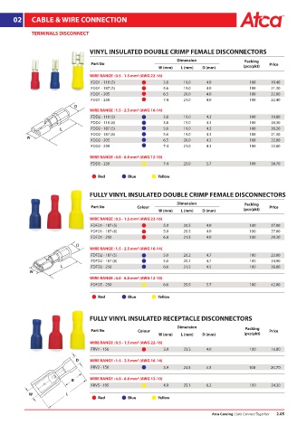 FULLY VINYL INSULATED DOUBLE CRIMP FEMALE DISCONNECTORS