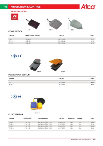 Part No Switch Angle Standard Cable Rating Max Level Length Price