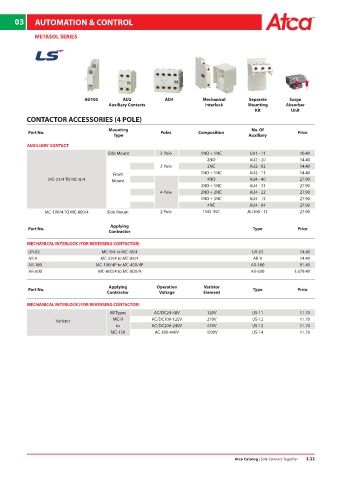 MC-100/4 TO MC-800/4 Side Mount 2 Pole 1NO 1NC AU100 - 11 27.90