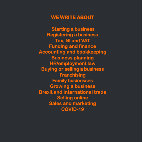 Tax, NI and VAT Funding and finance Accounting and bookkeeping Business planning HR/employment law Buying or selling a business Franchising