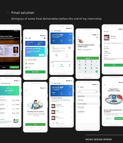 Final solution Glimpses of some final deliverables before the end of my internship. Go to the full case study GOJEK DESIGN INTERN