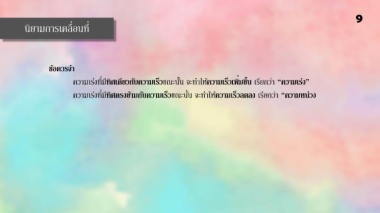 9 นิยามการเคลื่อนที่ ข้อควรจ า ่ ความเร่งที่มีทิศเดียวกับความเร็วขณะนั้น จะท าให้ความเร็วเพิมขึ้น เรียกว่า “ความเร่ง” ความเร่งที่มีทิศตรงข้ามกับความเร็วขณะนั้น จะท าให้ความเร็วลดลง เรียกว่า “ความหน่วง