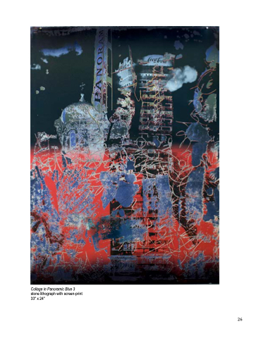 Collage in Panoramic Blue 3 stone lithograph with screen-print 33'' x 24'' 26