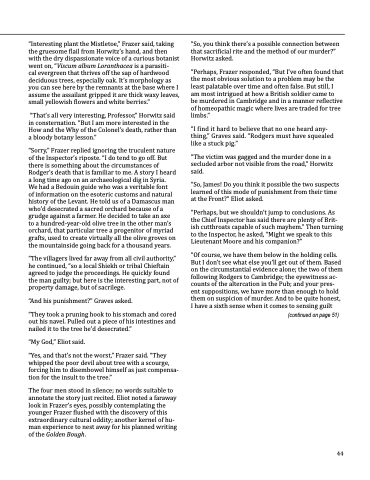 “Interesting plant the Mistletoe,” Frazer said, taking the gruesome flail from Horwitz’s hand, and then with the dry dispassionate voice of a curious botanist went on, “Viscum album Loranthacea is a parasiti-