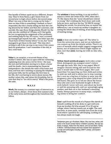 The wisdom to keep working, is on my mother’s mind in a letter she writes from 1995, when she’s 75. She shares that she “never should have retired so young.” She’s wishing she lived closer and could help me more, and how she has “SO MUCH energy.” Reading her words, I’m struck by how, no matter the differences, I am so much my mother’s daughter, re- sisting the whole idea of retiring, of not being useful, of wasting energy.