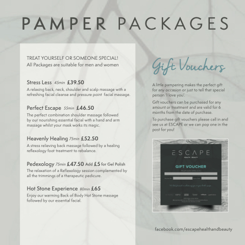 To purchase gift vouchers please call in and see us at ESCAPE or we can pop one in the post for you!
