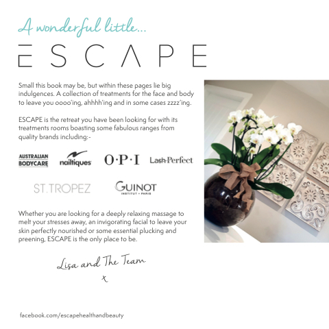 Whether you are looking for a deeply relaxing massage to melt your stresses away, an invigorating facial to leave your skin perfectly nourished or some essential plucking and preening, ESCAPE is the only place to be.