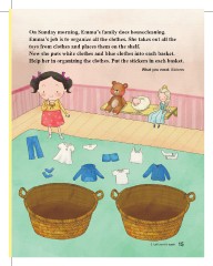 Help her in organizing the clothes. Put the stickers in each basket.