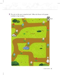 3 The cat is on the way to meet the duck. Follow the flowers with greater
