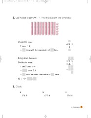 2 . Use models to solve 95 4. Find the quotient and remainder.