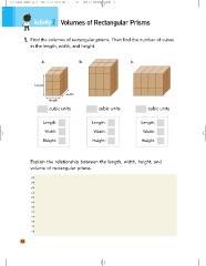1 . Find the volumes of rectangular prisms. Then find the number of cubes