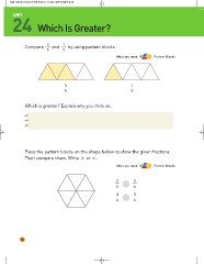 Compare 3 and 1 by using pattern blocks.