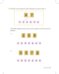 3 Find the number between 4 and 7 and draw an arrow to show it.