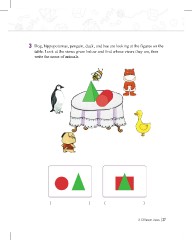 3 Dog, hippopotamus, penguin, duck, and bee are looking at the figures on the