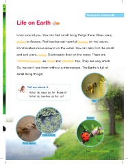 pollen to flowers. Red beetles eat harmful insects on the leaves.