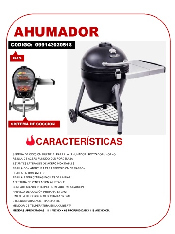 SISTEMA DE COCCIÓN MULTIPLE PARRILLA / AHUMADOR / ROTIZADOR / HORNO