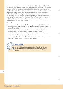 contains a number of exercises that will assist school leaders in taking practical