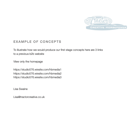 Lisa Swaine Lisa@tractorcreative.co.uk