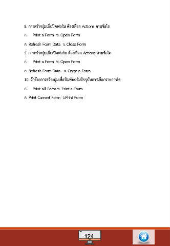 10. ถ้าต้องการสร้างปุ่มเพื่อพิมพ์ฟอร์มปัจจุบันควรเลือกรายการใด