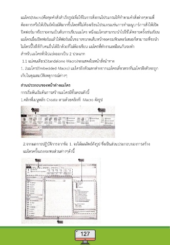 แมโคร(Macro)คือชุดคําสั่งสําเร็จรูปเพื่อใช้ในการสั่งงานโปรแกรมให้ทําตามคําสั่งต่างๆตามที่