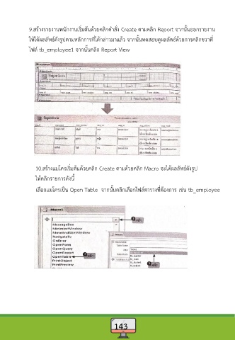 9.สร้างรายงานพนักงานเริ่มต้นด้วยคลิกคําสั่ง Create ตามคลิก Report จากนั้นออกรายงาน